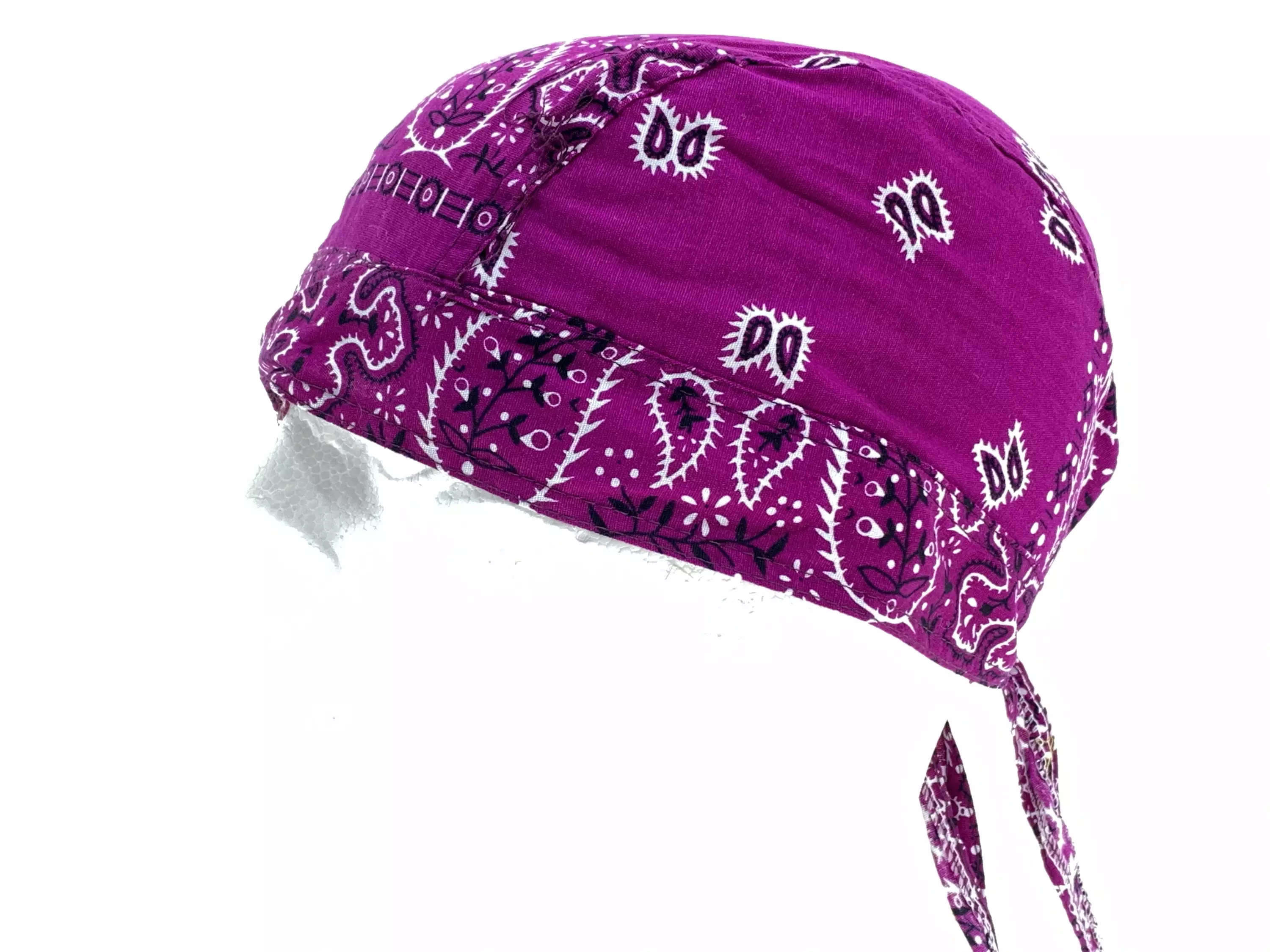Headwrap, lila, valkomusta kuviot. Muotoonommeltu headwrap huivi. Yksi koko. Solmittavat nauhat takana. 100 % puuvillaa.
