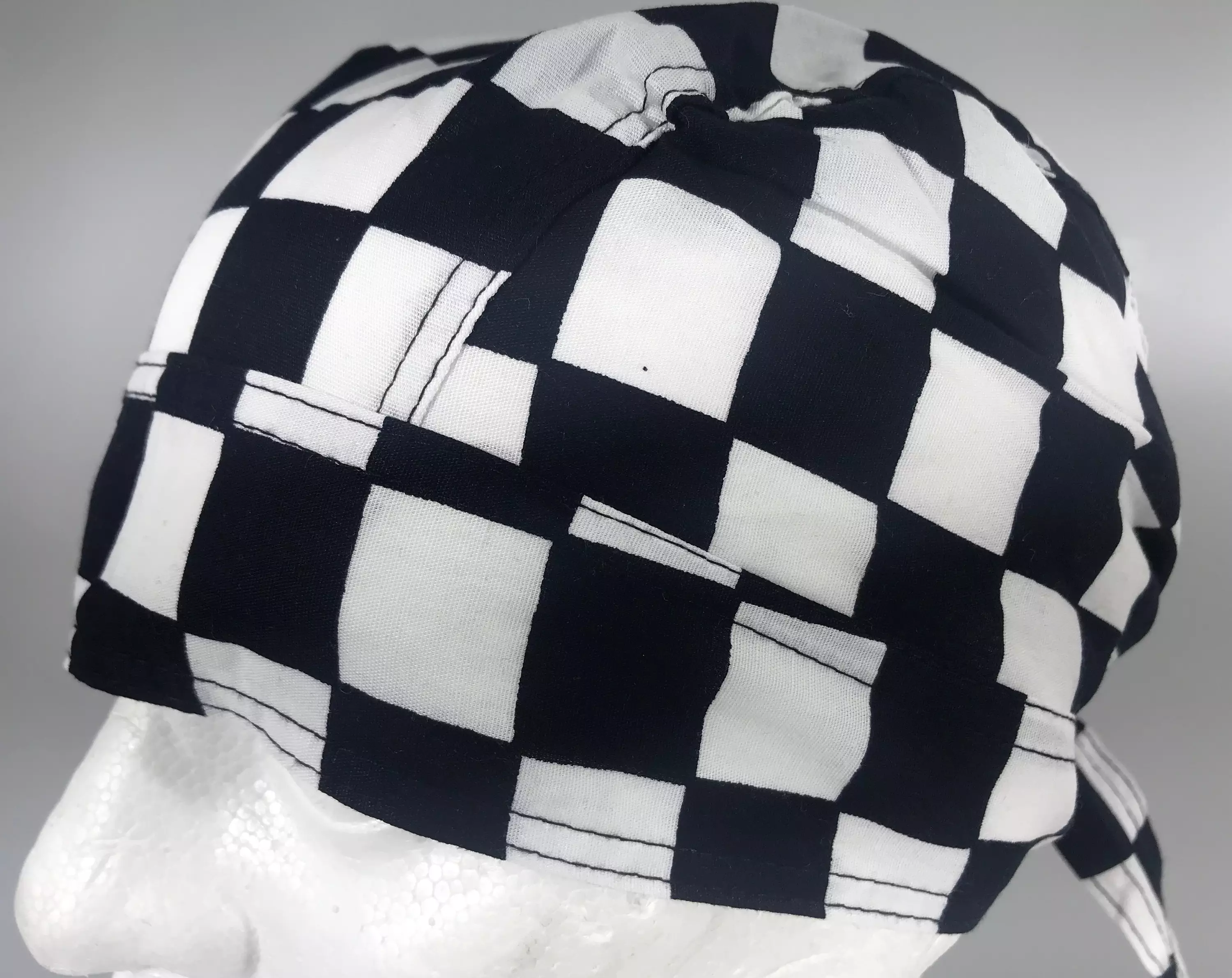Headwrap, ralliruutu, keskikoko. Ruudun koko 25 mm x 25 mm.. Muotoonommeltu headwrap huivi. Yksi koko. Solmittavat nauhat takana. 100 % puuvillaa.