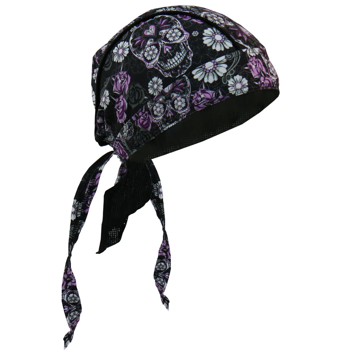 Headwrap, Hot Leathers, Sugar Skull. Verkkovuorellinen headwrap, joka siirtää tehokkaasti kosteutta. Konepesu. Käytä kypärän alla tai ilman. Vain yksi koko.