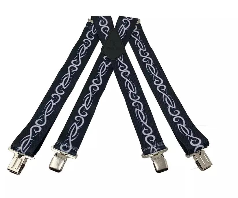Henkselit 50 mm, Tribal. Olkaimet neljällä pikaklipsulla, nopea kiiinnittää ja irroittaa. Säädettävä pituus, pisimmillään 121 cm (48"). Made in USA.