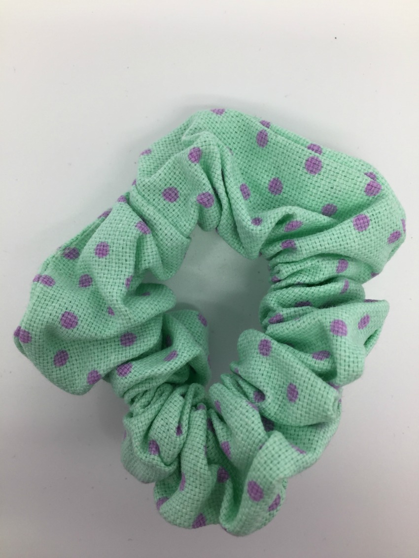 Hiusdonitsi, Polka Dot, mintunvihreä. Hiusdonitsi eli scrunchie pilkuilla. Joustavan hiusdonitsin koko n. 10 x 10 cm.