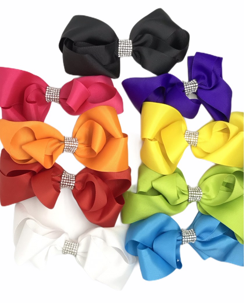 Hiusrusetti metalliklipsulla. Nauhan leveys 40 mm, rusetin pituus 160 mm. 9 eri väriä. Rusetin keskellä somisteena tekotimantteja.