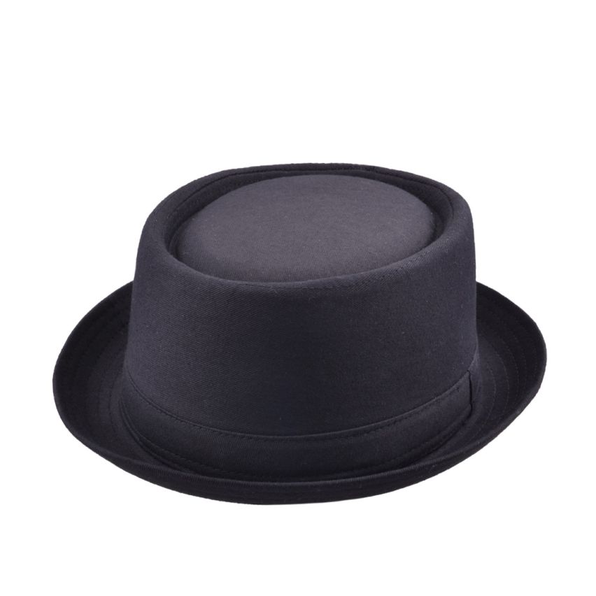 Hot Rod hattu musta, puuvilla. Cotton Pork Pie Hat, black. materiaali 50 % puuvillaa, 50 % polyesteria.