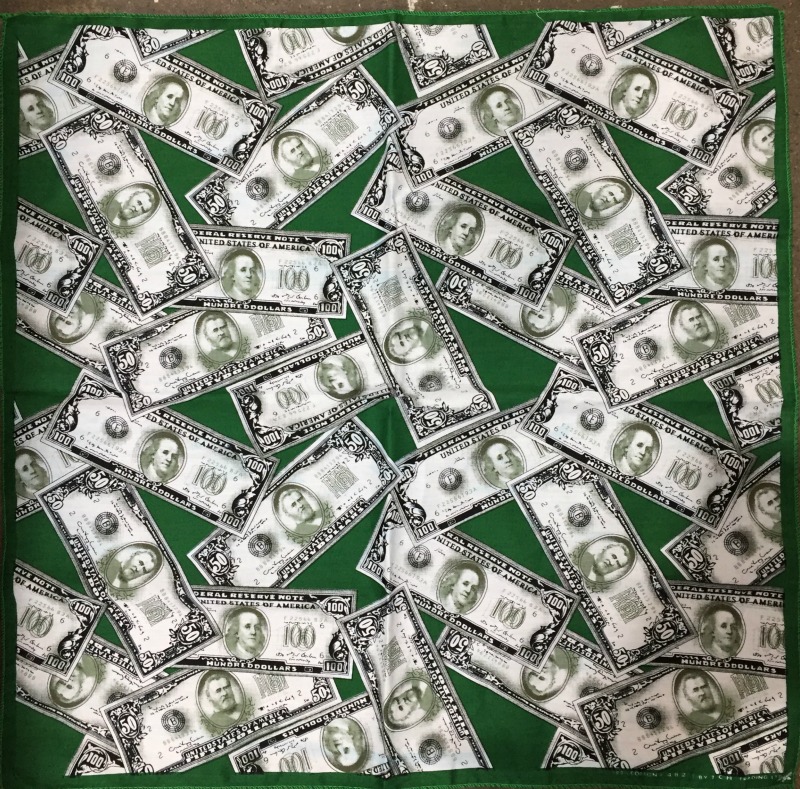 Huivi, Dollarit, vihreä . Huivin koko 52 x 52 cm. Materiaali 100 % puuvillaa.