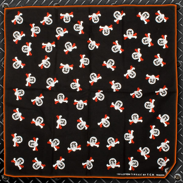 Huivi , kallo&luut , musta punavalkoisilla kuvioilla.