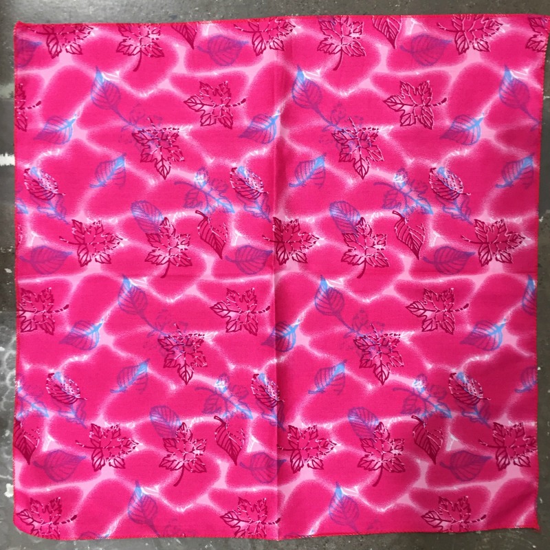 Huivi, Lehdet, pinkki. Huivin koko 52 x 52 cm. Materiaali 100 % puuvillaa.