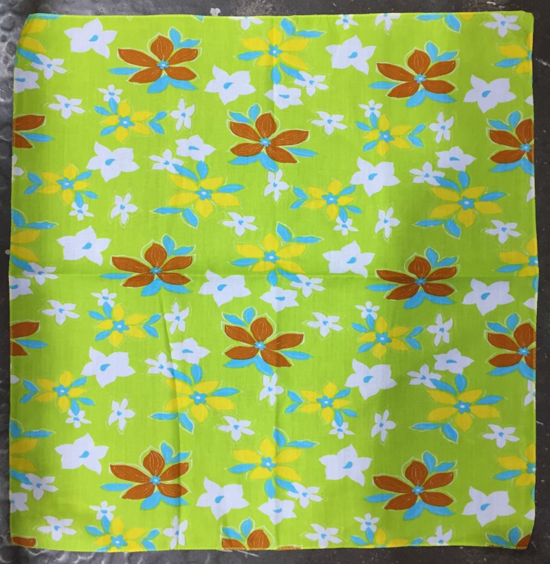 Huivi, Limenvihreä, kukkasia. Huivin koko 52 x 52 cm. Materiaali 100 % puuvillaa.
