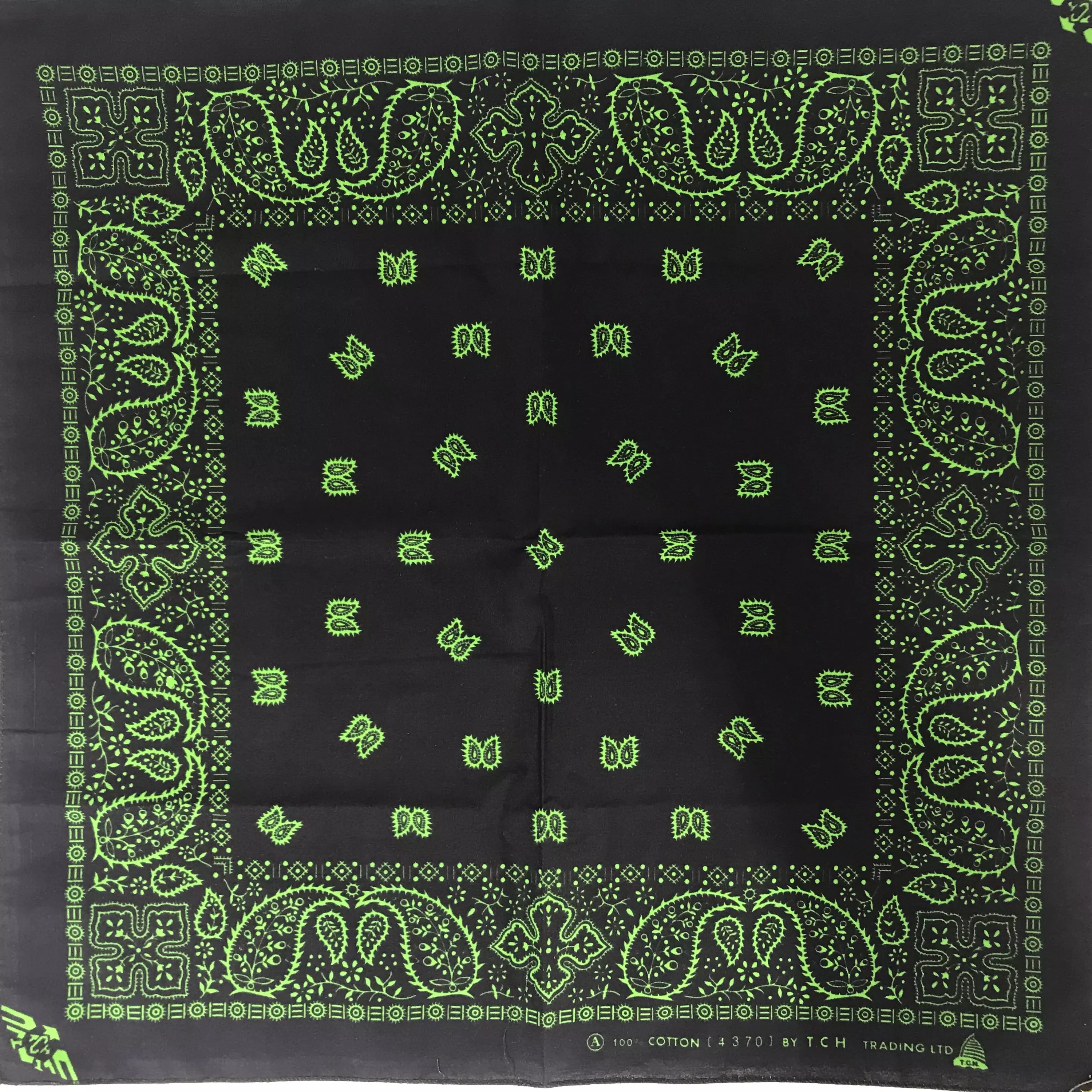 Huivi musta, vihreä kasmir kuvio. Huivin koko 52 x 52 cm. Materiaali 100 % puuvillaa.