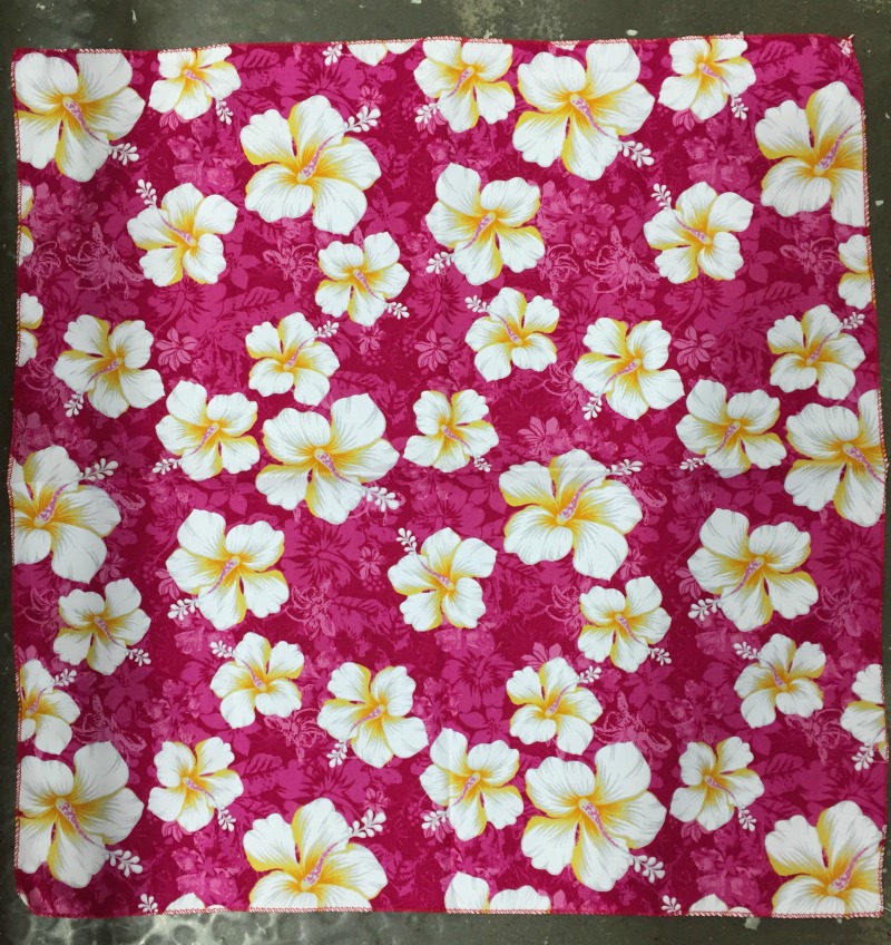 Huivi, Pinkki, valkokeltaiset kärsimyskukat. Huivin koko 52 x 52 cm. Materiaali 100 % puuvillaa.