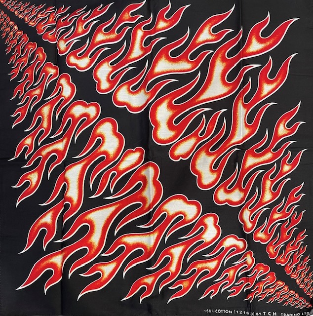 Huivi, Punainen liekkimeri. Materiaali 100 % puuvillaa, koko n. 50 x 50 cm.