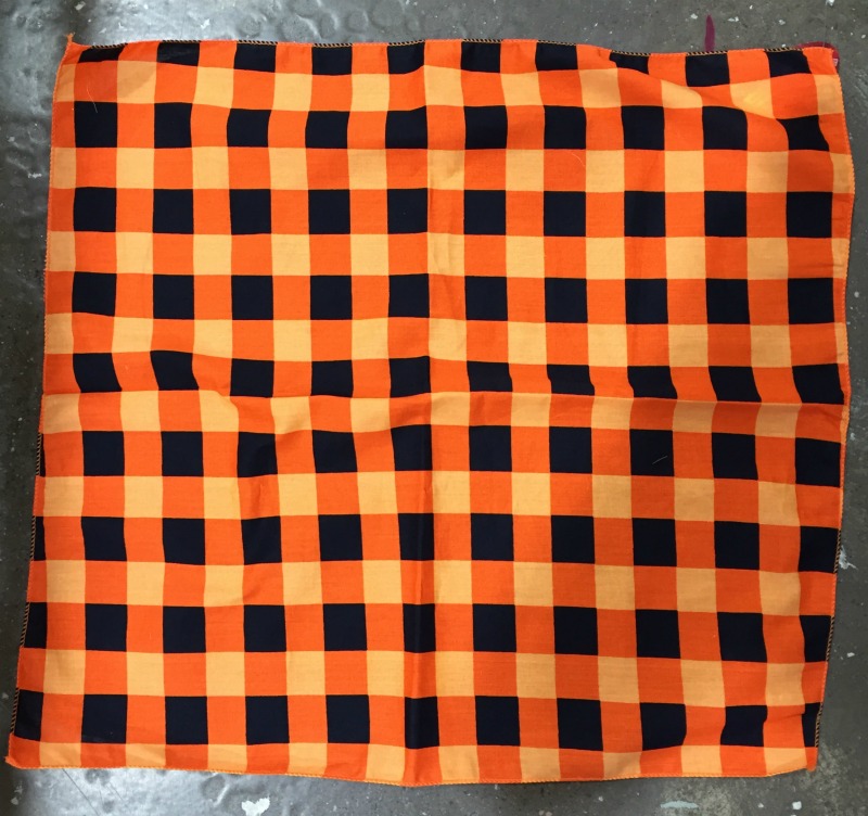 Huivi, Ralliruutu, oranssi musta. Huivin koko 52 x 52 cm. Materiaali 100 % puuvillaa.