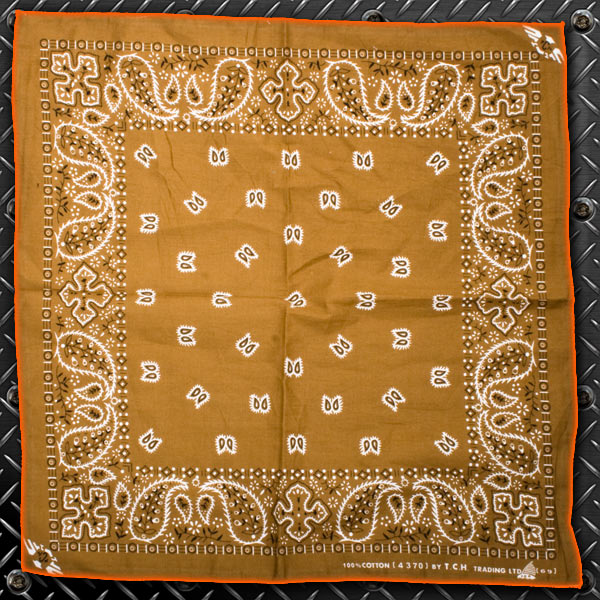 Huivi , ruskea mustilla ja valkoisilla bandana kuvioilla.