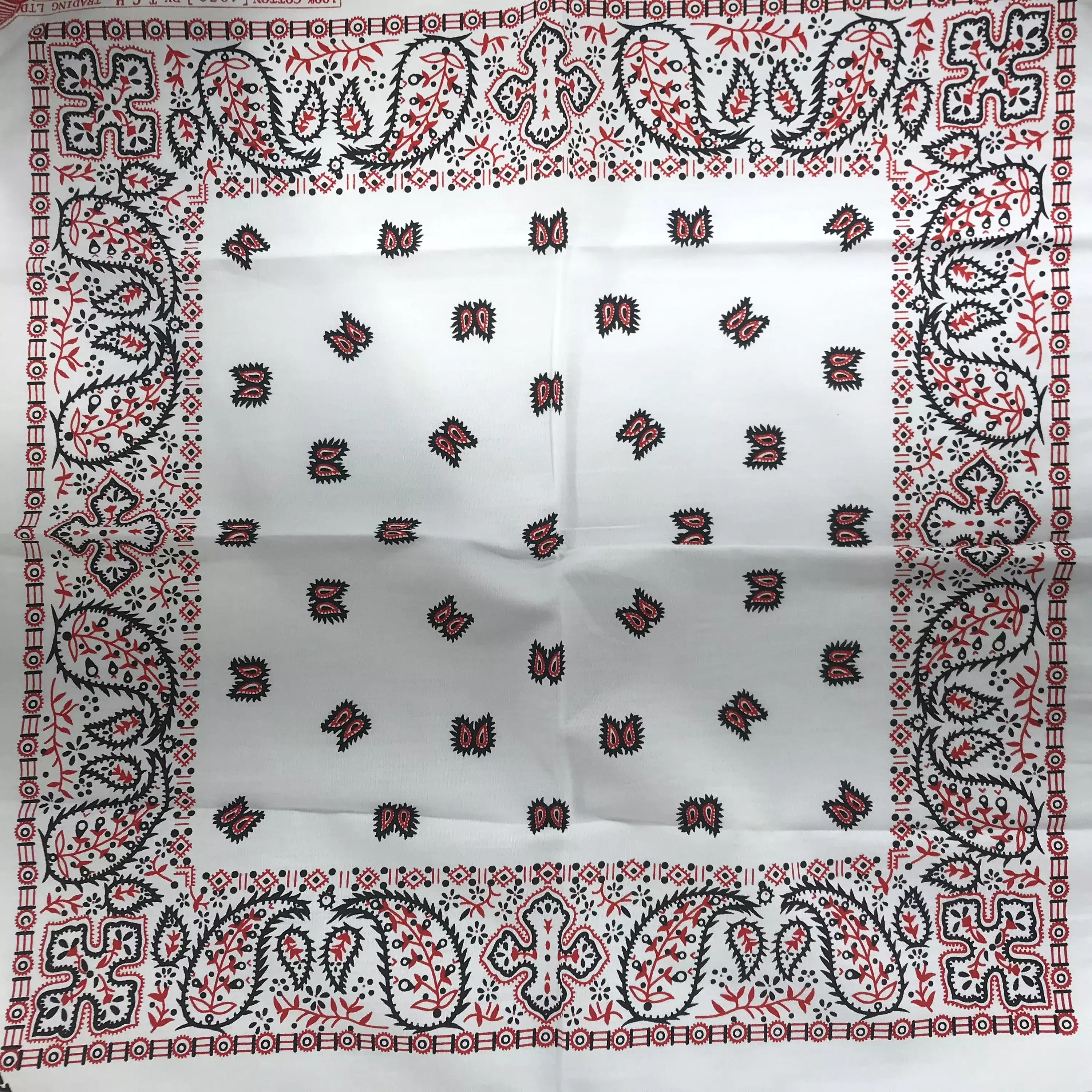 Huivi, valkoinen bandana mustapunaisella kasmir kuviolla. Huivin koko 52 x 52 cm. Materiaali 100 % puuvillaa.