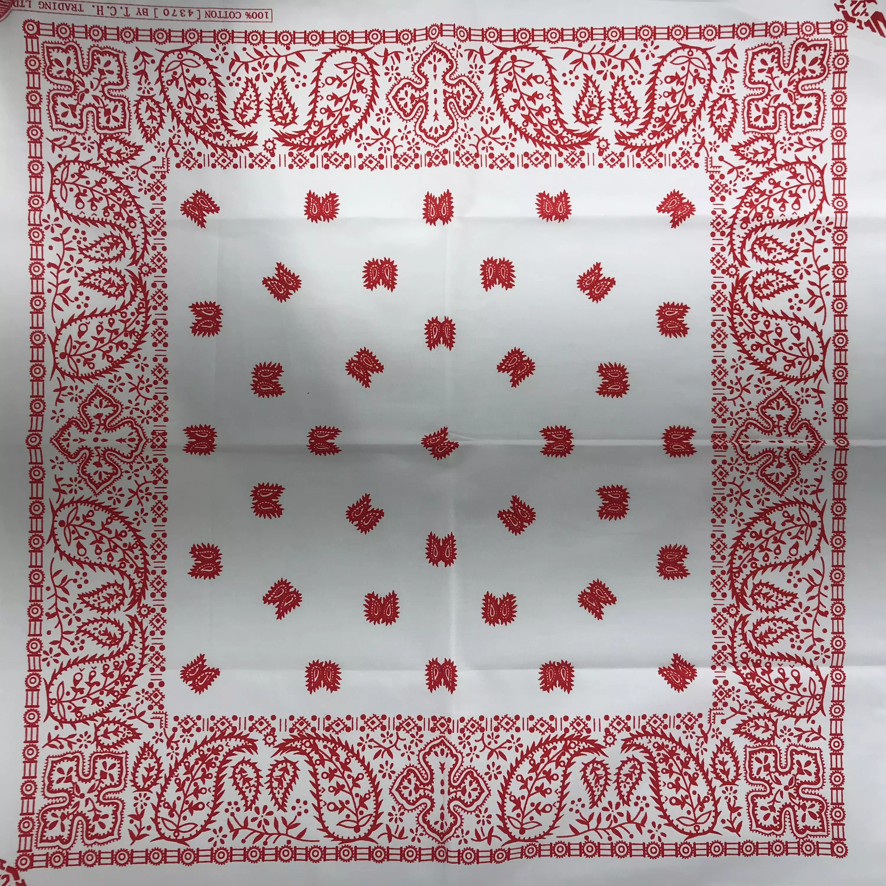 Huivi, valkoinen bandana punaisella kasmirkuviolla. Huivin koko 52 x 52 cm. Materiaali 100 % puuvillaa.