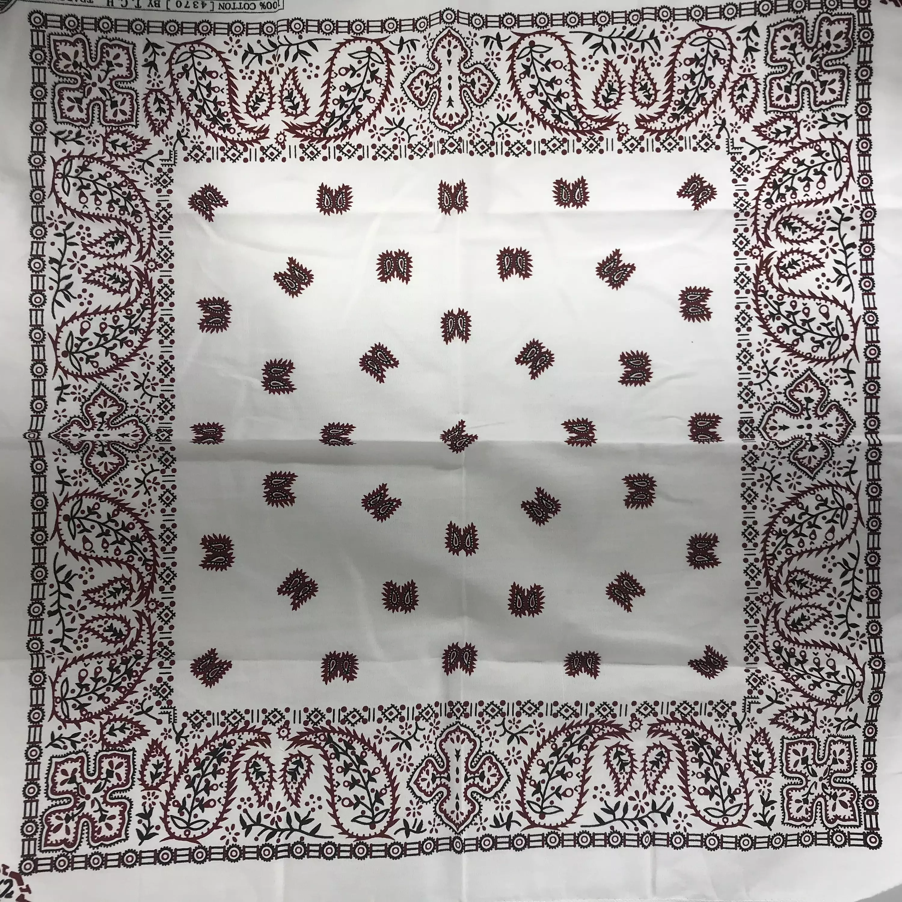 Huivi, valkoinen bandana ruskeamustalla kasmir kuviolla. Huivin koko 52 x 52 cm. Materiaali 100 % puuvillaa.