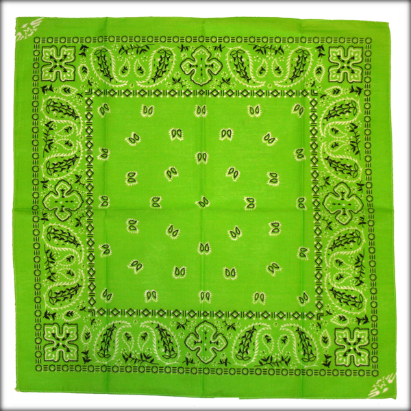 Huivi , vihreä mustilla ja valkoisilla bandana kuvioilla.
