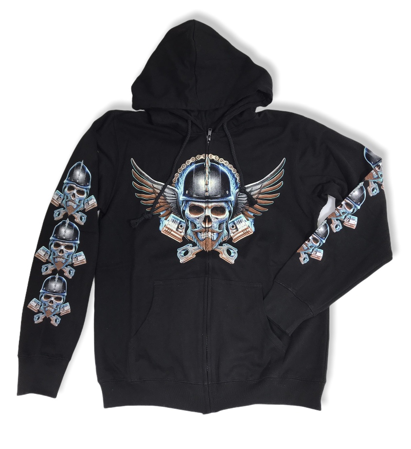 Huppari, Rock Eagle, Helmet Skull. Rock Eaglen miesten vetoketjullinen huppari, jossa painatukset sekä rinnassa että selässä. Myös hihoissa painatukset. Materiaali 100 % puuvilla.