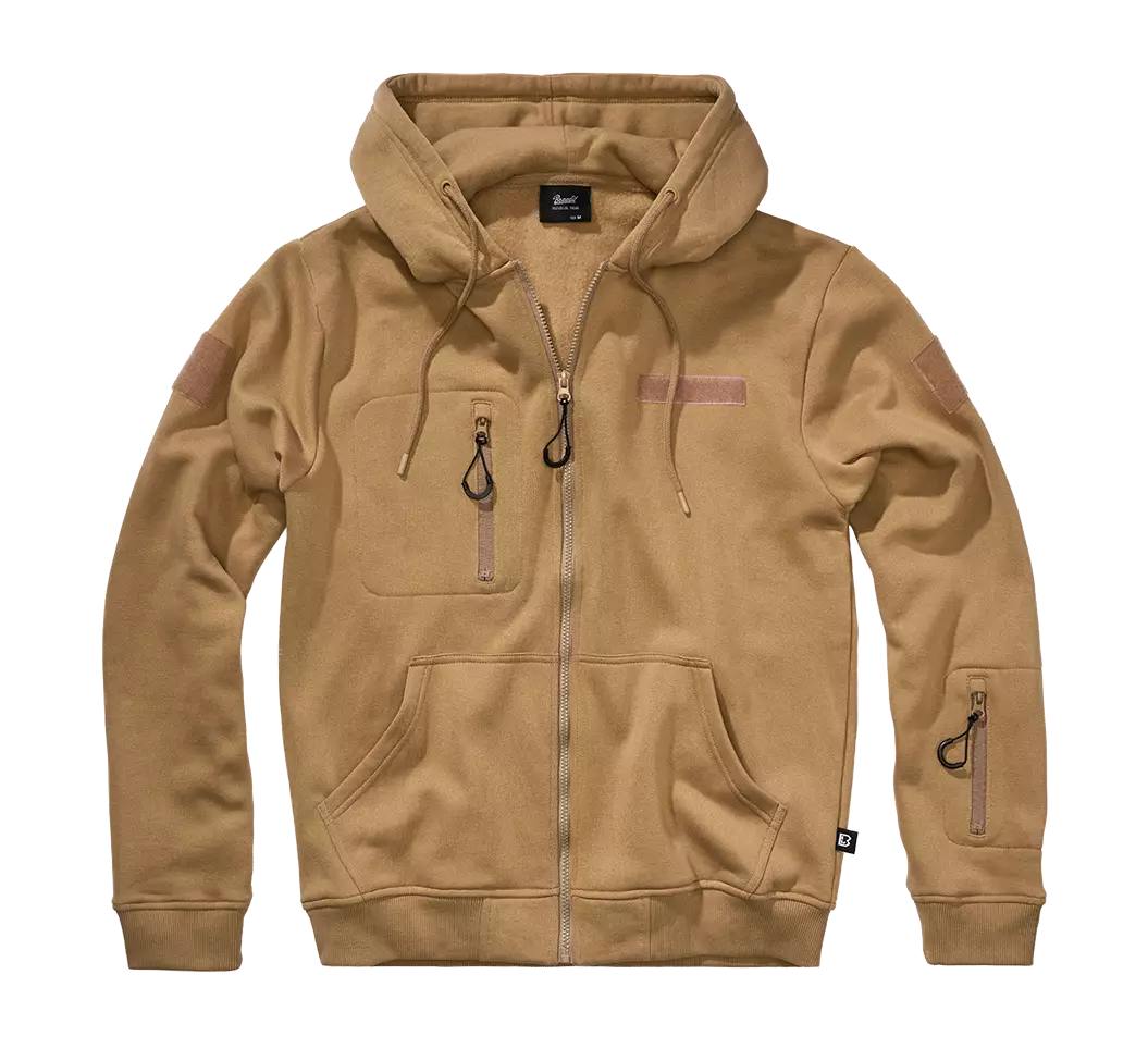 Huppari Tactical, Brandit. Camel-värinen, laadukas huppari. Hupparin sisäpinta pehmeäksi harjattua nukkaa. Materiaali 60 % puuvillaa, 40 % polyeteeniä.