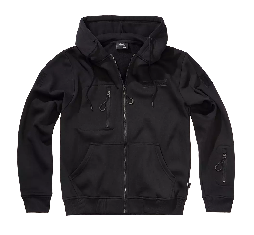 Huppari Tactical, Brandit. Musta, laadukas huppari. Hupparin sisäpinta pehmeäksi harjattua nukkaa. Materiaali 60 % puuvillaa, 40 % polyeteeniä.