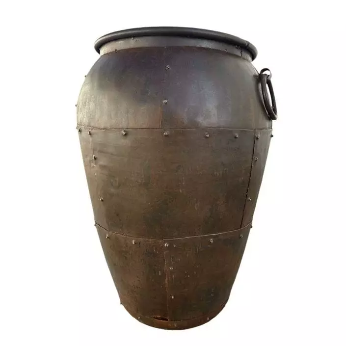 Iso patinoitunut metalliruukku. Näyttävä ruukku ruosteista metallia. Tukeva, mutta painoltaan täysin nosteltavissa oleva kaunis ruukku, metallisilla pyöreillä rengaskahvoilla. Ruukun korkeus 60 cm, halkaisija leveimmältä kohdalta n. 35 cm