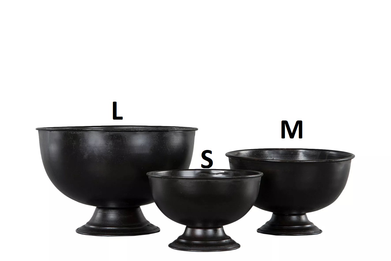 Jalallinen metallikulho / -ruukku, musta L. A Lot Decoration. Ruukun halk. 26 cm, kork. 17 cm. Kulho ei sovellu sellaisenaan elintarvikekäyttöön, mutta koristeeksi ja esim. kasvien suojaruukuksi. Valmistettu käsin.