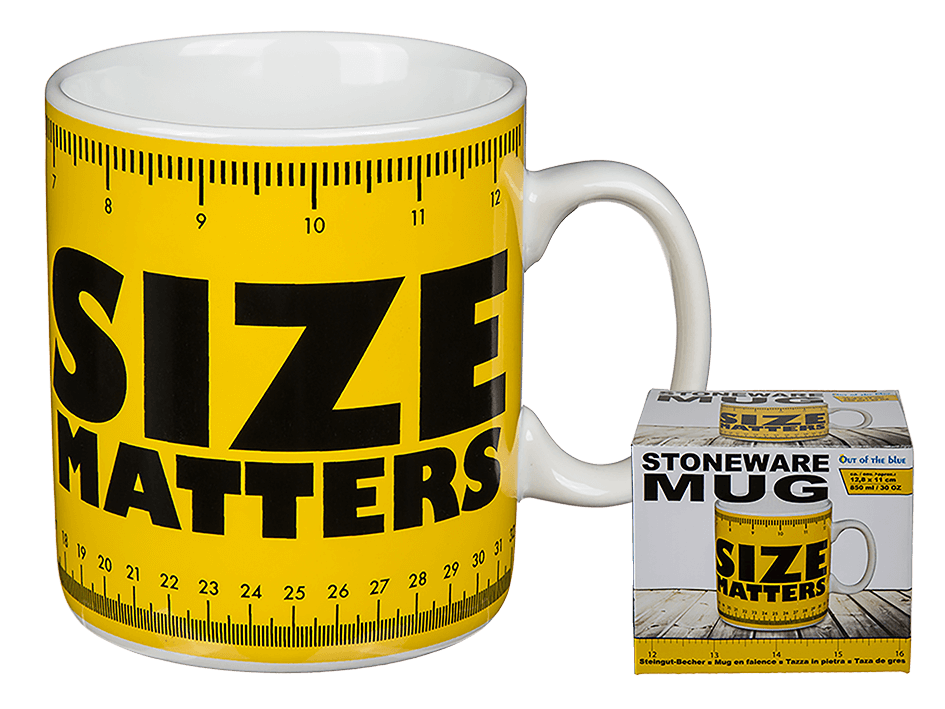 Jättimuki, Size Matters. Mukin tilavuus n. 8,5 dl, koko 12,8 x 11 cm.