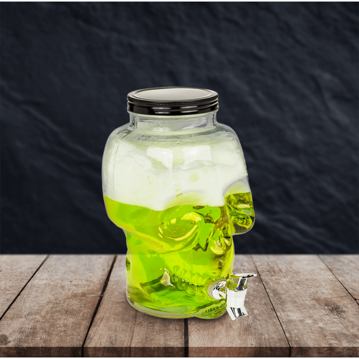 Juoma-automaatti Lasikallo. Tarjoile ja annostele juomat tyylikkäästä juomakallosta. Kallon koko n. 22 x 18 x 28,5 cm.