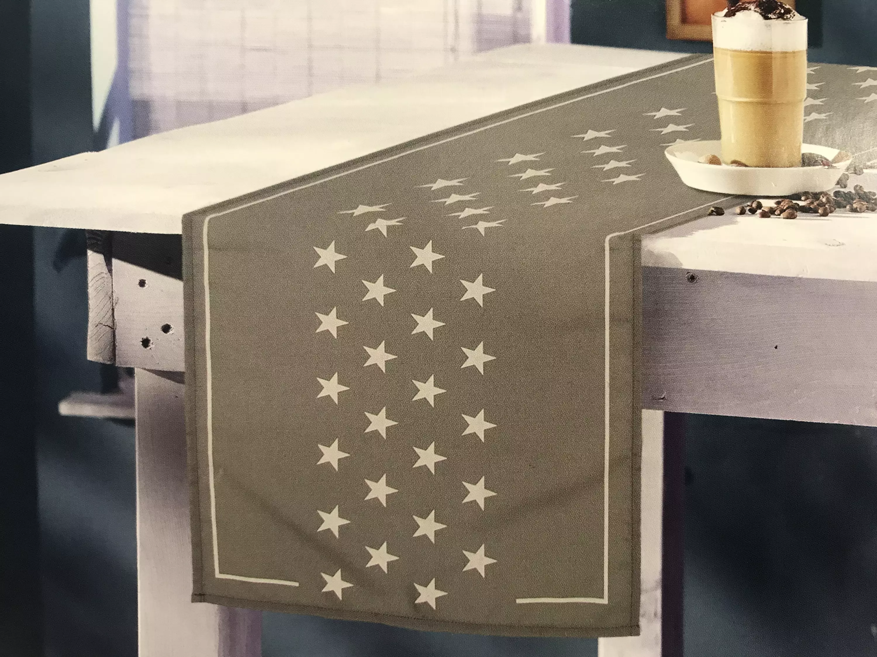 PRT979 Kaitaliina, Tähti, harmaa. Harmaa kaitaliina, jossa valkoisia tähtiä. 100 % polyesteri. Koko n. 40 cm x 140 cm.