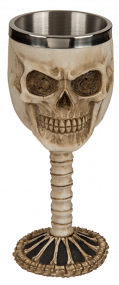 Kallopikari, iso kallo, halloween. Tyylikäs pikari, jonka sisus on ruostumatonta terästä ja ulkokuori Polyresiniä. Pikarin mitat 19 x 7 cm.