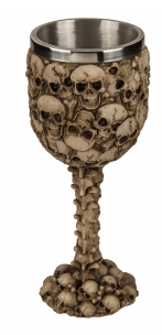 Kallopikari, Kallokasa, halloween. Tyylikäs pikari, jonka sisus on ruostumatonta terästä ja ulkokuori Polyresiniä. Pikarin mitat 19 x 7 cm.
