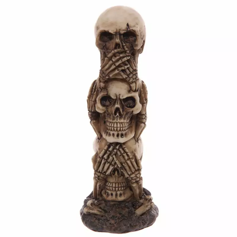 Kallototeemi HearNo SpeakNo SeeNo, Evil Skull Totem Decoration. Halloween. Koko 6,5 x 19 x 7 cm. Materiaali resiini.