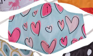 Kangasmaski valkoisella kangas sisäosalla. 60-asteen pesu. Säädettävät joustavat korvalenkit.