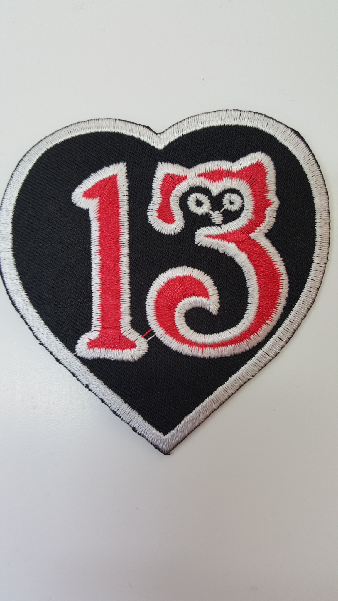 Kangasmerkki, 13. Merkin koko 7x7 cm. Merkki voidaan kiinnittää joko ompelemalla tai silittämällä.