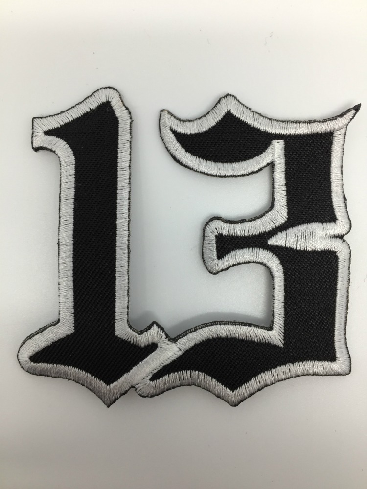 Kangasmerkki, 13. Hihamerkin koko n. leveys 7,5 cm ja korkeus 7 cm. Merkin voi kiinnittää joko ompelemalla tai silittämällä.