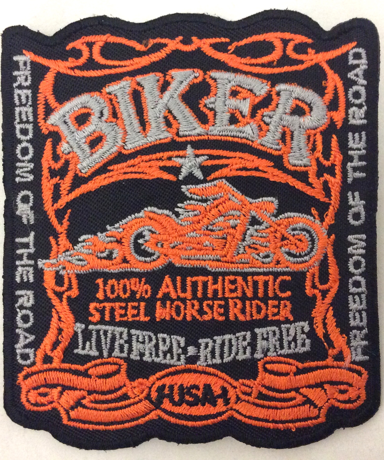 Kangasmerkki, Biker USA life… Kangasmerkki Biker USA life free ride free. Merkin koko 8x9 cm. Merkin takana kuumaliima. Merkin voi kiinnittää joko ompelemalla tai silittämällä.