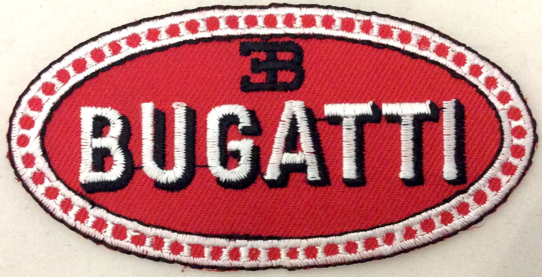 Kangasmerkki, Bugatti . Merkin koko 9x4,5 cm. Merkin takana kuumaliima. Merkin voi kiinnittää joko ompelemalla tai silittämällä.