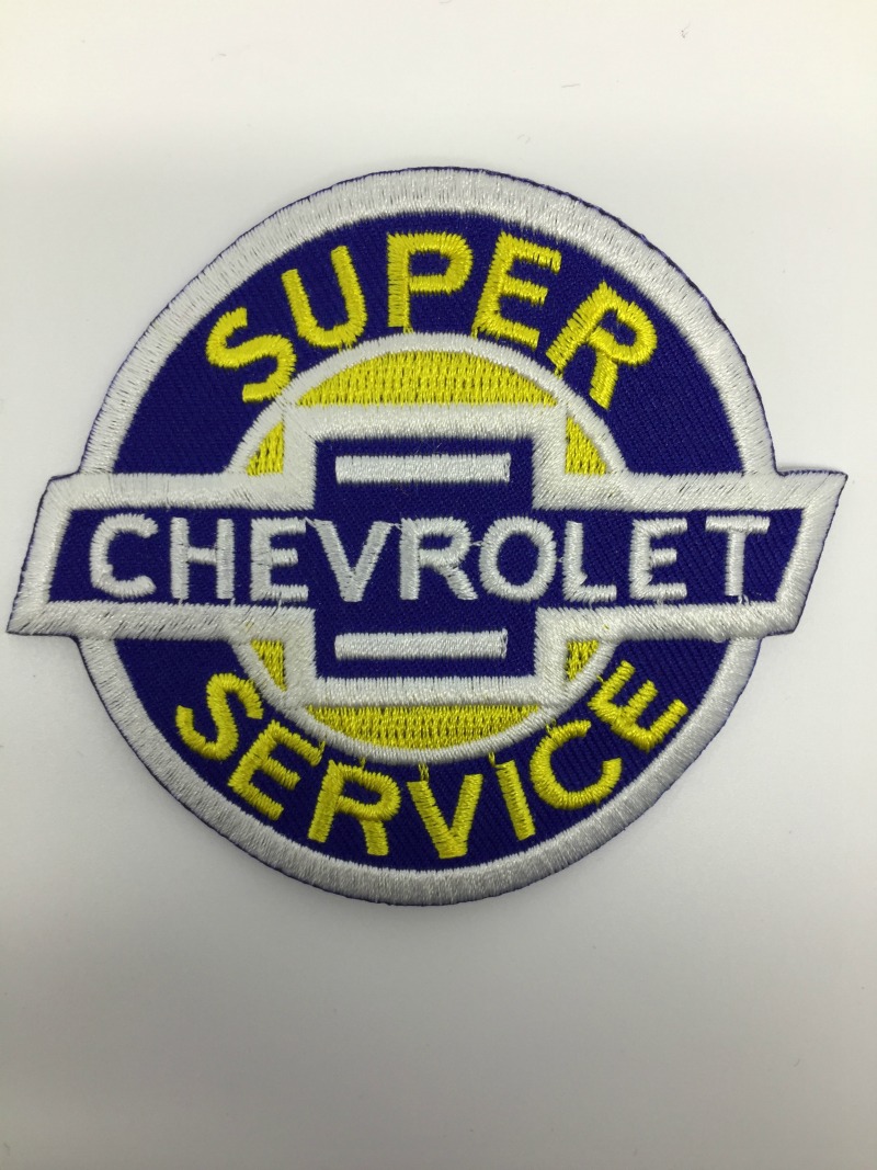 Kangasmerkki, Chevrolet Super Service. Hihamerkin koko n. leveys 9 cm ja korkeus 7,5 cm. Merkin voi kiinnittää joko ompelemalla tai silittämällä.