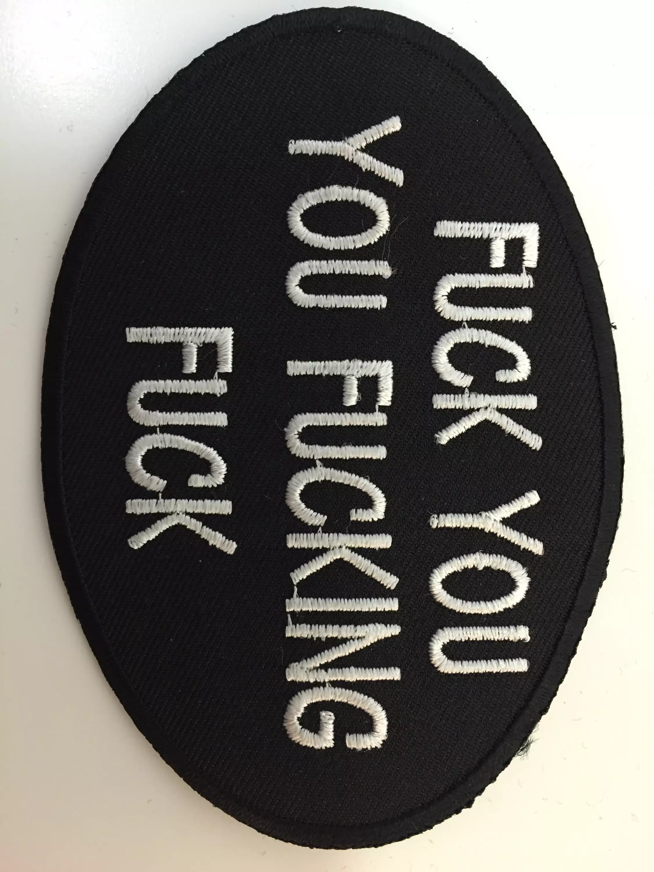 Kangasmerkki, Fuck You You Fucking Fuck. Merkin koko 10 x 7 cm. Voit kiinnittää merkin joko ompelemalla tai silittämällä.