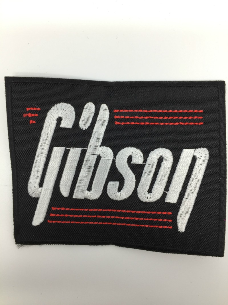 Kangasmerkki, Gibson. Merkin koko leveys 9 cm ja korkeus 7 cm. Merkin voi kiinnittää joko ompelemalla tai silittämällä.