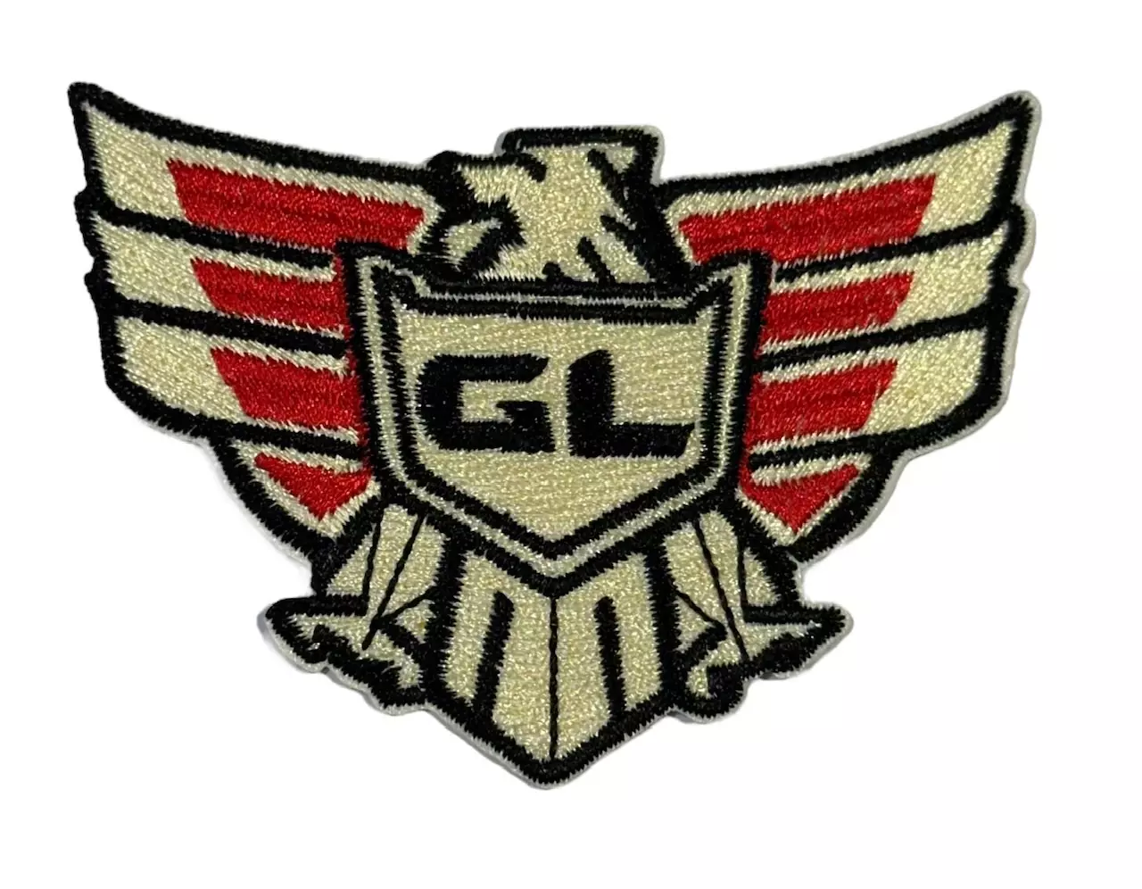 Kangasmerkki GoldWing. Mitat leveys 90 mm, korkeus 60 mm.