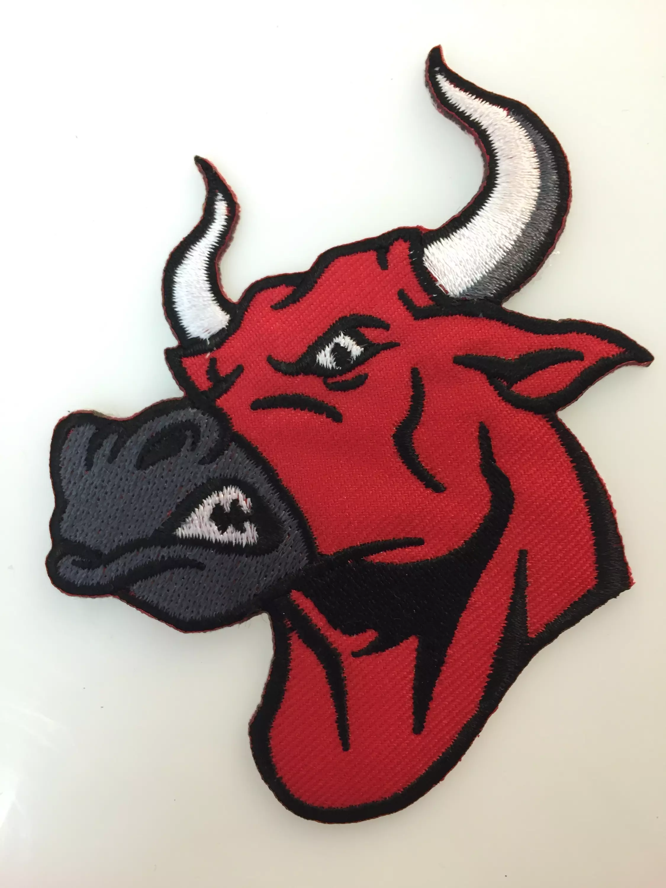 Kangasmerkki, Härkä. Merkin koko leveys 7,5 cm ja korkeus 10 cm. Merkin voi kiinnittää joko ompelemalla tai silittämällä.