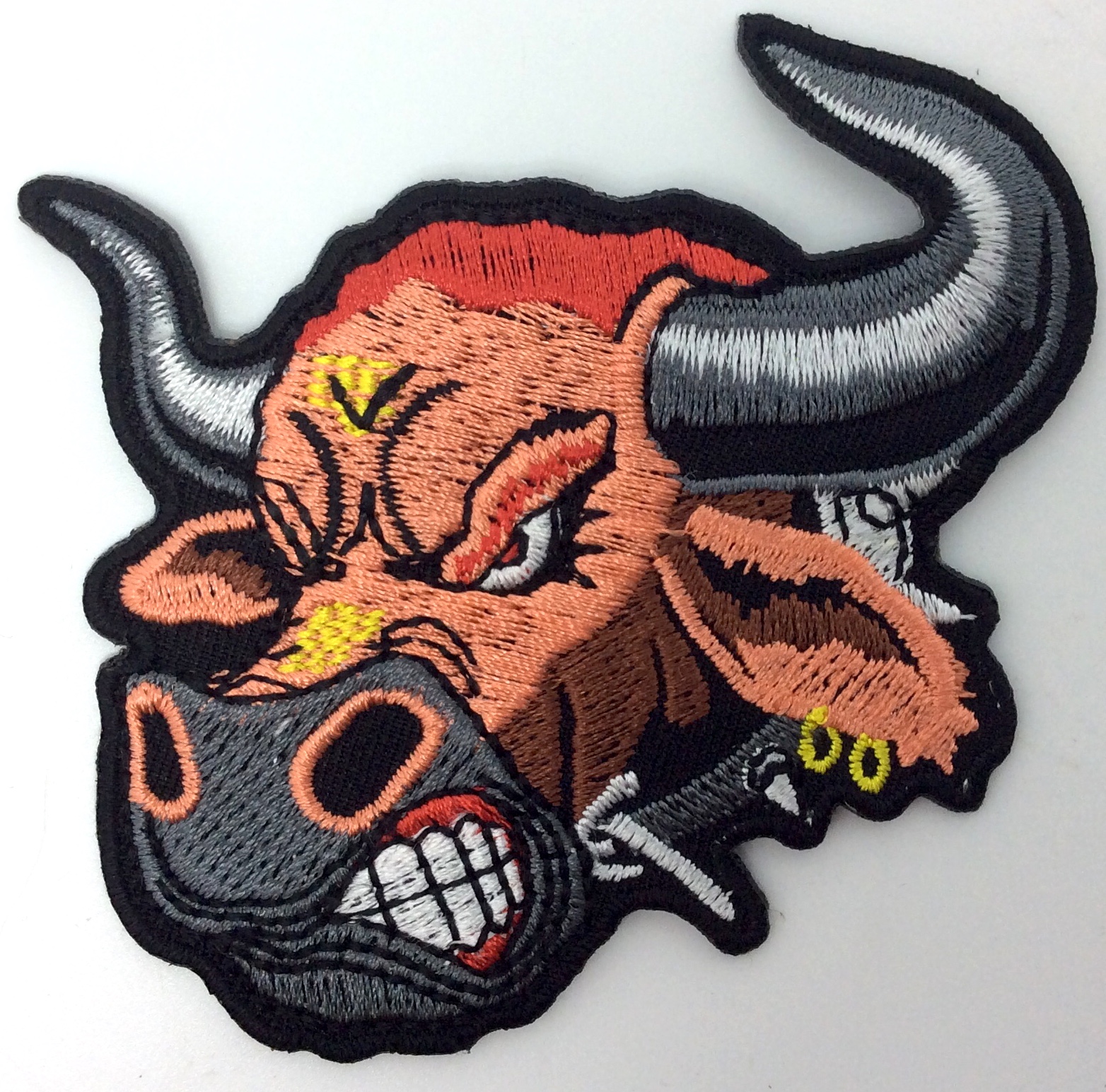 Kangasmerkki, Härkä . Merkin koko 8x8,5 cm. Merkin takana kuumaliima. Merkin voi kiinnittää joko ompelemalla tai silittämällä.