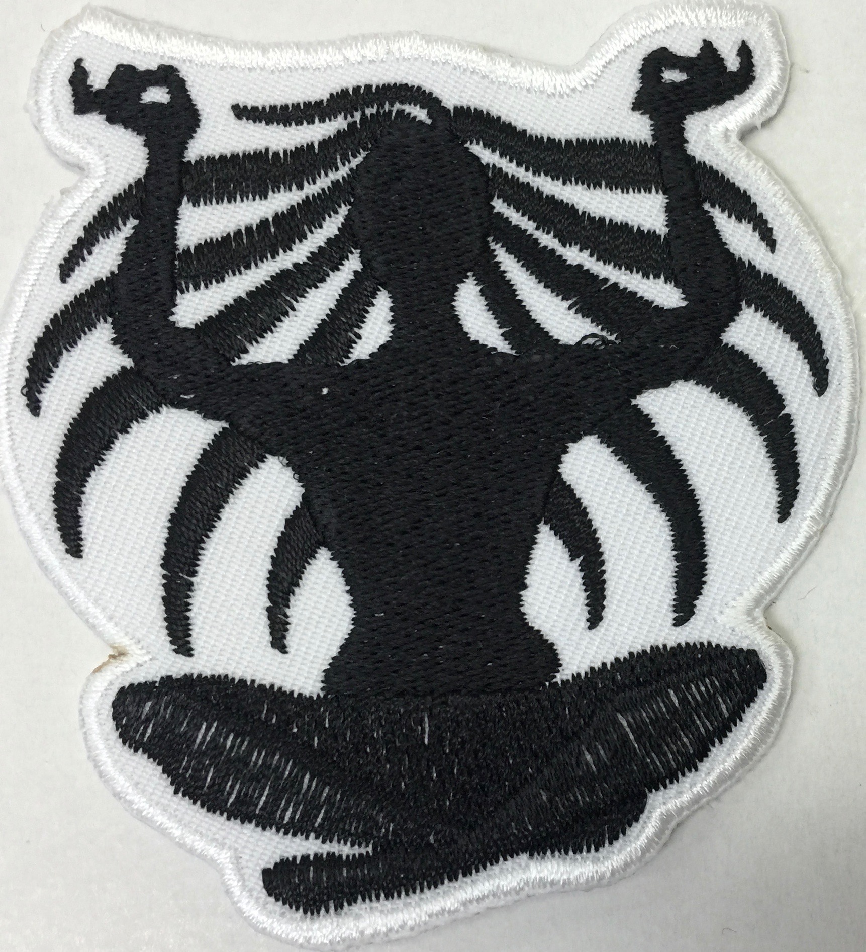 Kangasmerkki, Jooga. Merkin koko 7 x 6,5 cm. Merkin voi kiinnittää joko ompelemalla tai silittämällä.