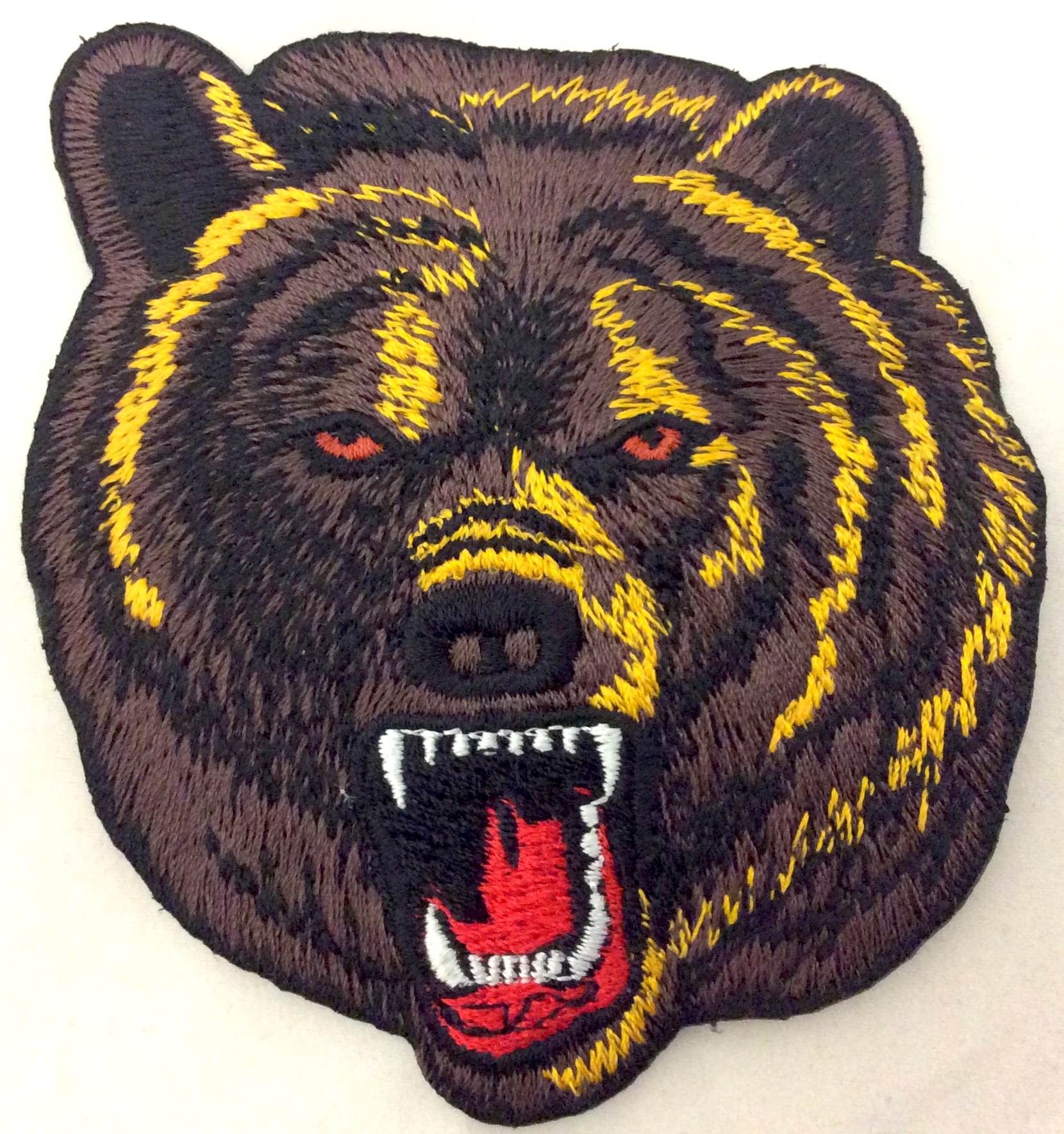 Kangasmerkki, Karhu . Merkin koko 8,5x9 cm. Merkin takana kuumaliima. Merkin voi kiinnittää joko ompelemalla tai silittämällä.