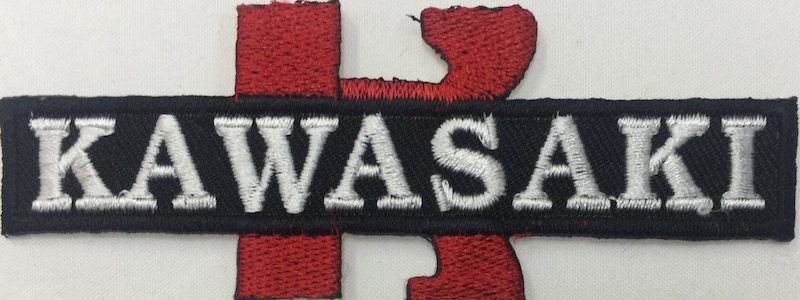 Kangasmerkki, Kawasaki. Merkin koko 9 x 3,5 cm.