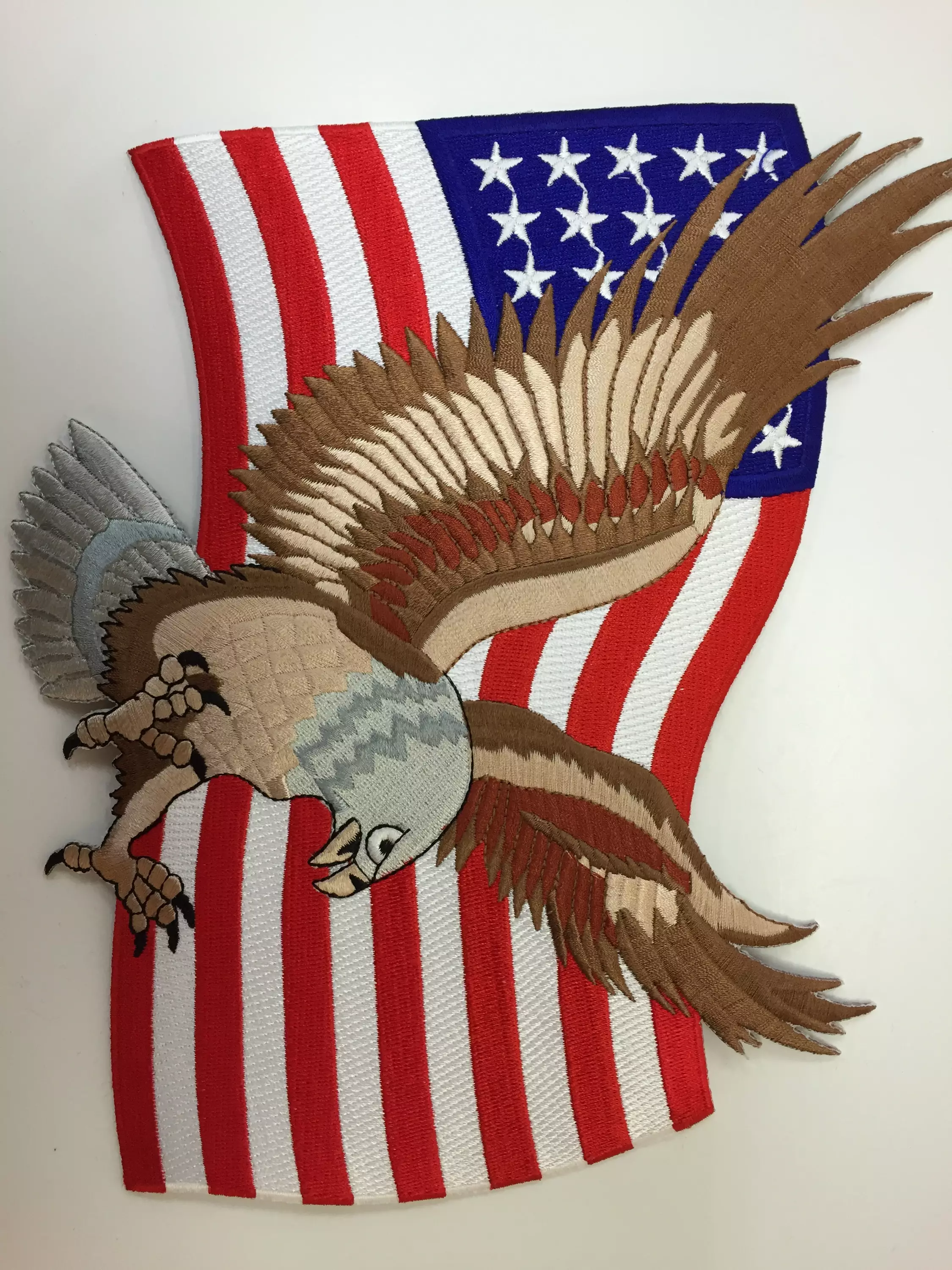 Kangasmerkki, kotka & USA:n lippu. Merkin koko 24 x 19 cm.