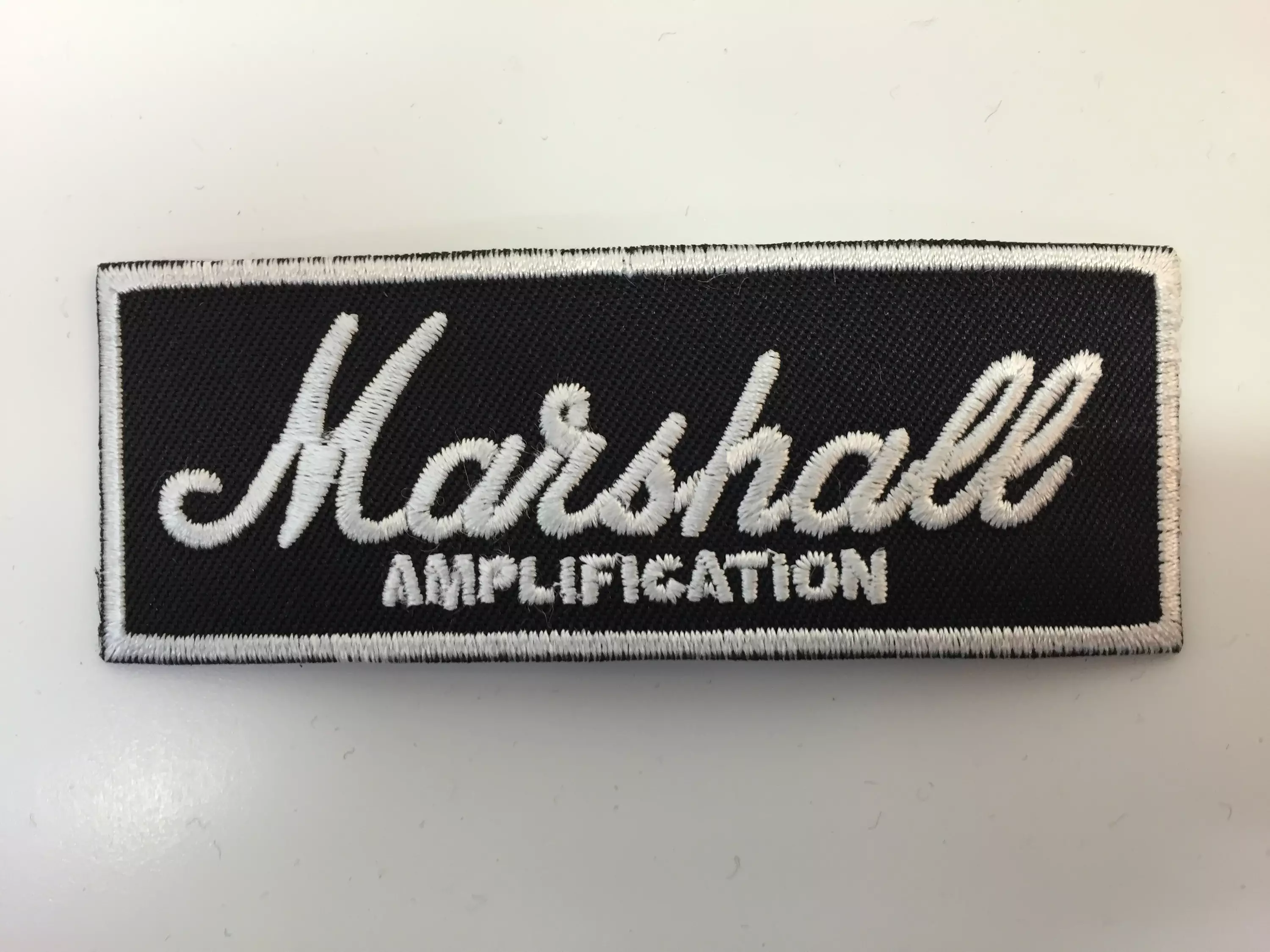Kangasmerkki, Marshall. Merkin koko 9x3 cm.Merkin voi kiinnittää joko silittämällä tai ompelemalla.