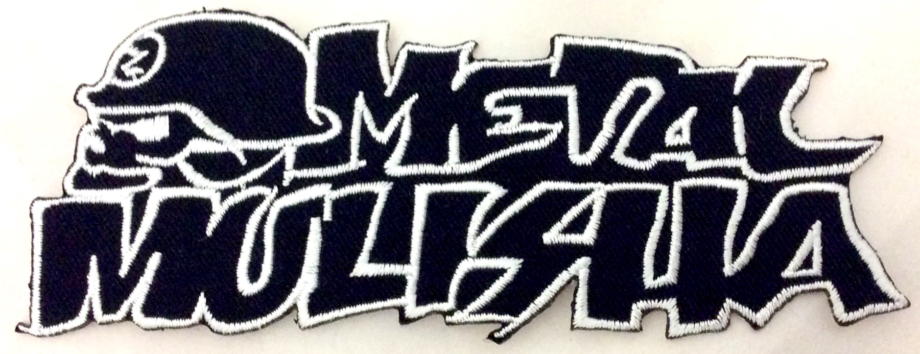 Kangasmerkki, Metal Mulisha . Merkin koko 13x5 cm. Merkin takana kuumaliima. Merkin voi kiinnittää joko ompelemalla tai silittämällä.