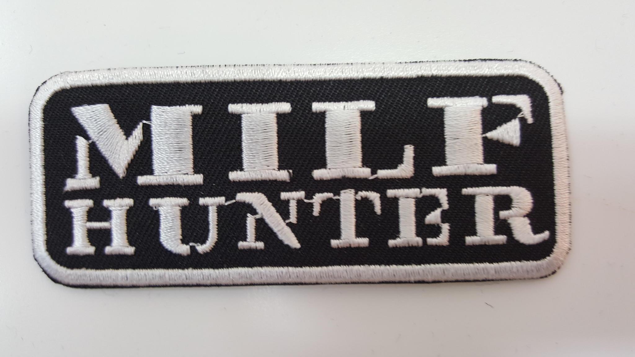Kangasmerkki, MILF HUNTER. Merkin koko 3,5x9 cm. Voidaan kiinnittää silittämällä tai ompelemalla.