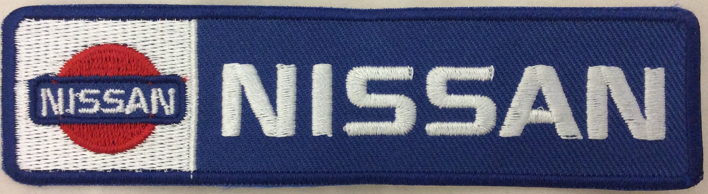 Kangasmerkki, Nissan sininen . Merkin koko 12x3 cm. Merkin takana kuumaliima. Merkin voi kiinnittää joko ompelemalla tai silittämällä.